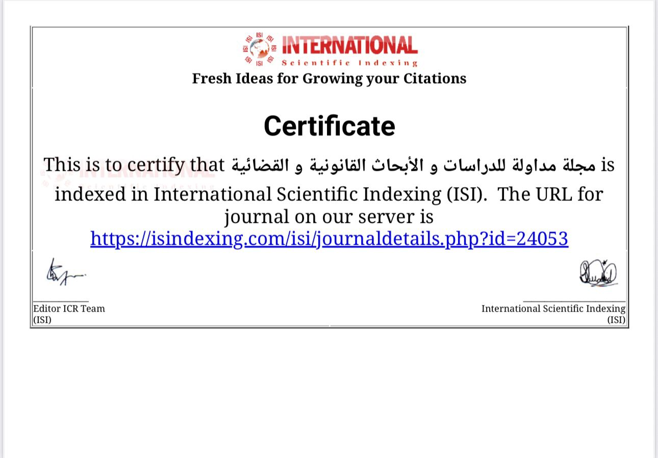 إخبار بتصنيف مجلة مداولة ضمن قاعدة ISI للفهرسة الدولية